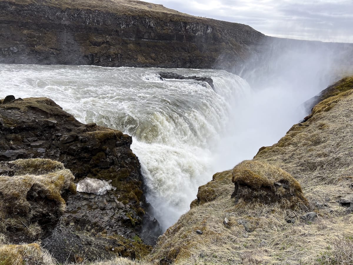 Der nächste lange Stopp istGullfoss, wo wir ungefähr 45 Minuten hatten. Gullfoss war atemberaubend; Die Kraft des Wasserfalls, der in einen Canyon kaskadiert, war immens.