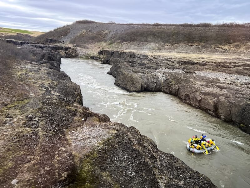 Wir haben einen zusätzlichen kurzen Stopp an einem Canyon stromabwärts von Gullfoss gemacht, der häufig zum Rafting verwendet wird. Diese Station ist nicht auf der offiziellen Reiseroute, und unser Führer sagte, er sei nur enthalten, wenn der Bus eine gute Zeit macht. Der Stopp war wunderschön, aber wenn Sie dort nicht aufhören, verpassen Sie nicht.