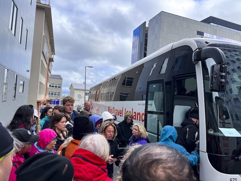Achten Sie auf ein Fahrzeug mit dem Namen Ihres Reiseveranstalters und stellen Sie dann sicher, dass es Ihren Namen aufruft. Ich fand diese Erfahrung ein bisschen stressig, wie mehrere Busse fürBustravel Islandangekommen, aber für verschiedene Ausflüge.